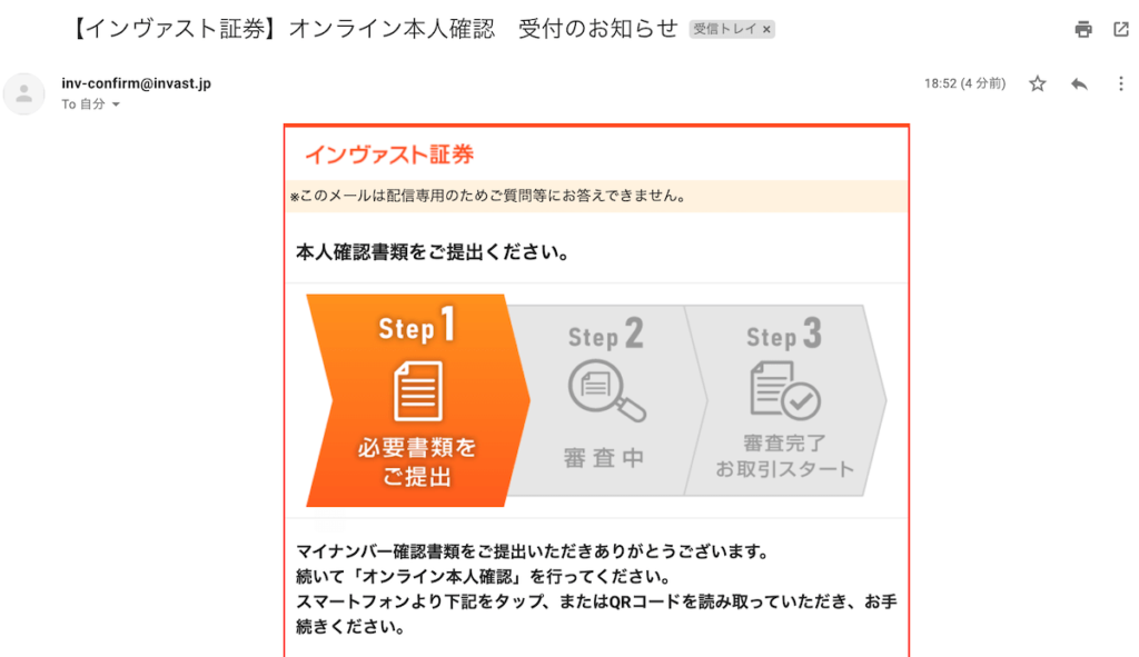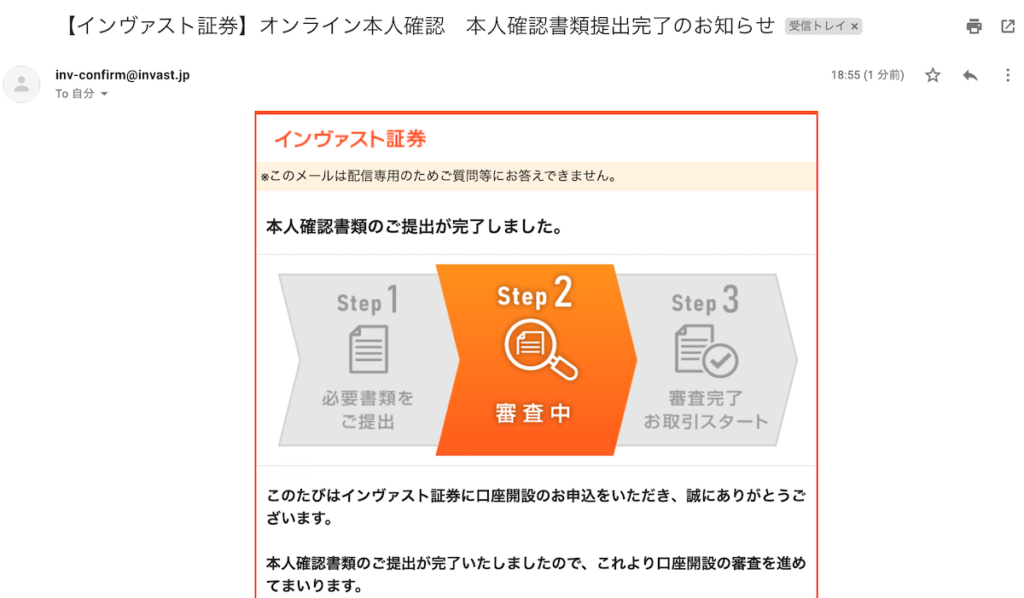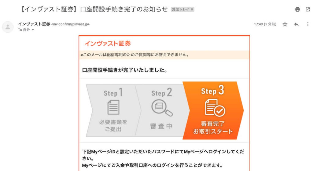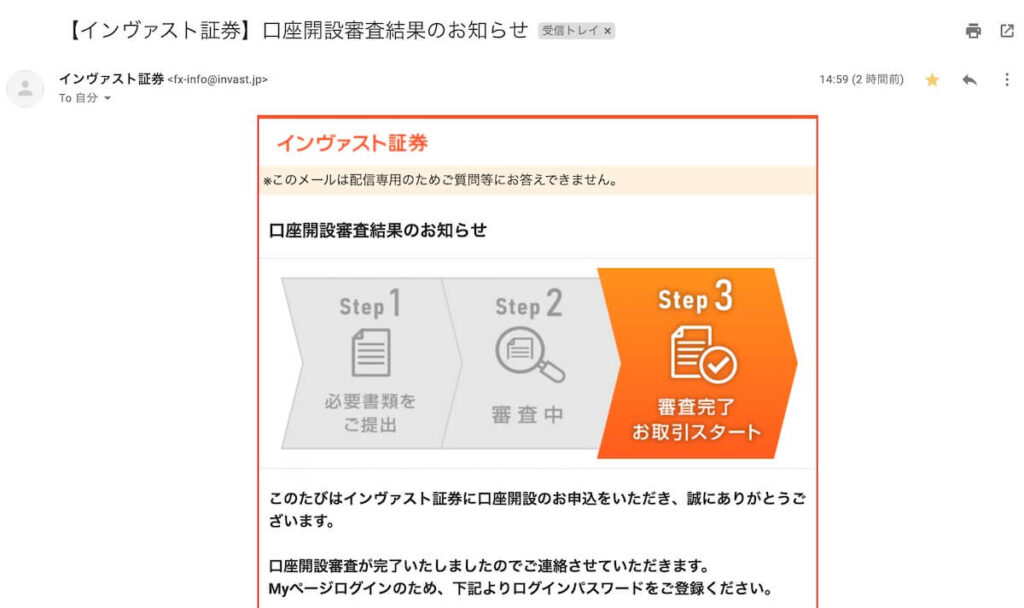 口座開設手続きが完了し、下記のメールが届いたら口座開設が完了です。