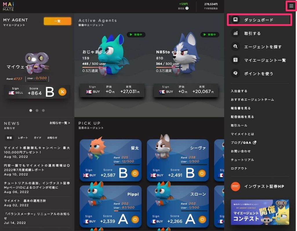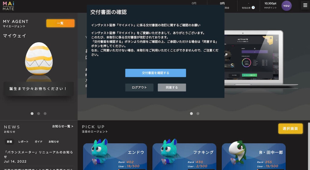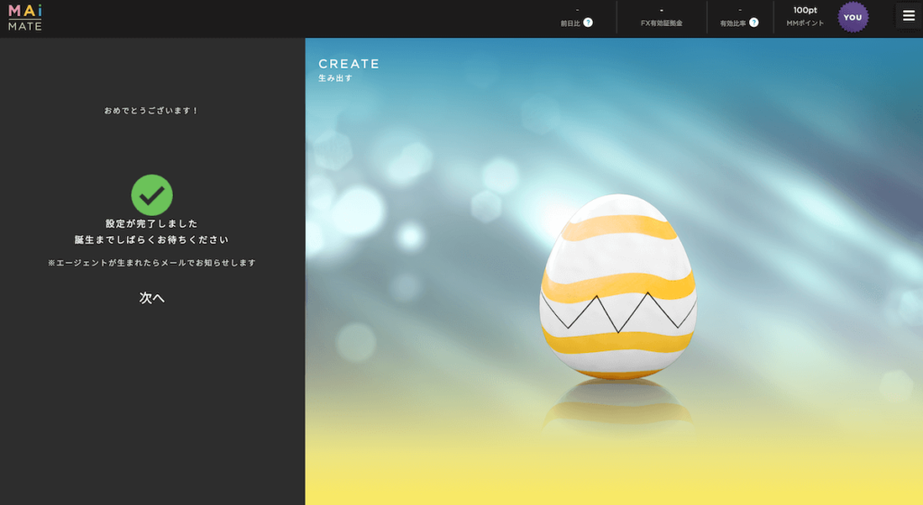 審査は数分〜1営業日かかりますが、終わればAIに売買を任せるマイメイトが始められます。