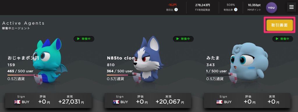 エージェントの売買は、『1日1回・日本時間の20時』と決まっています。
