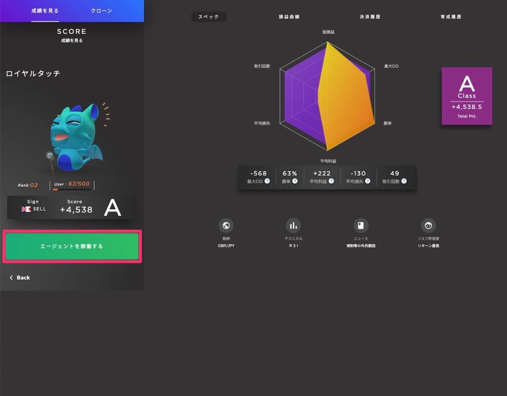 好きなエージェントを選択し、『エージェントを稼働する』をクリックします。