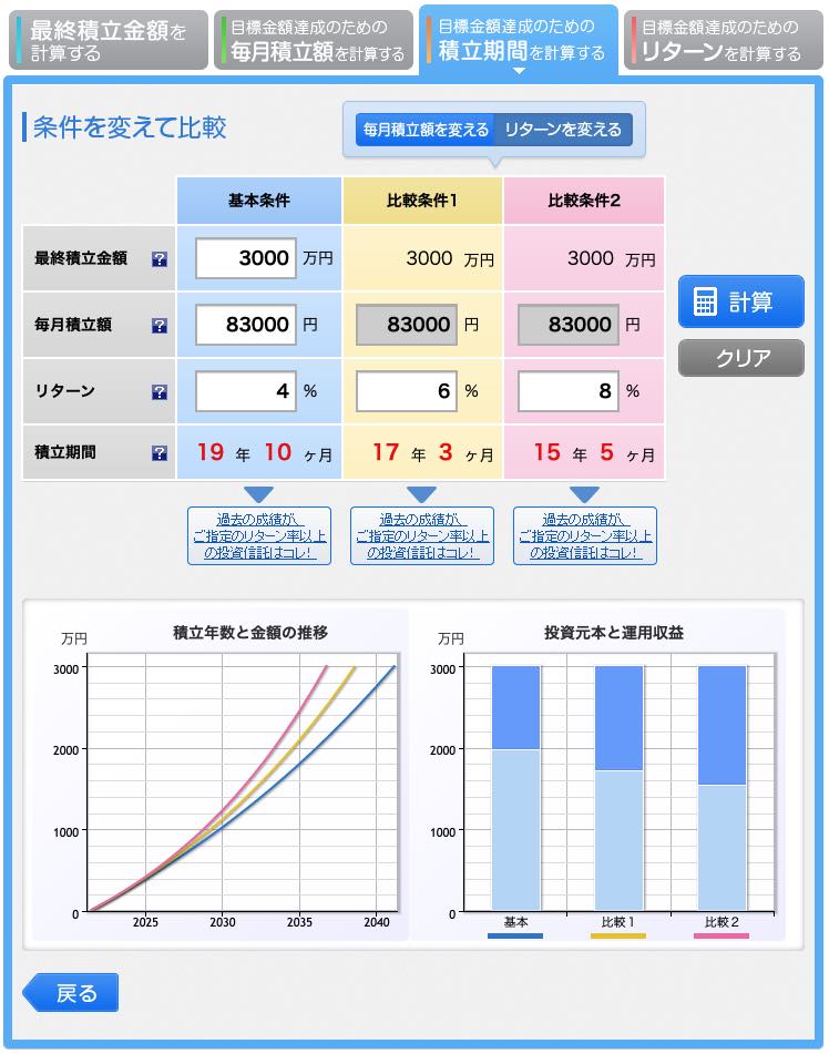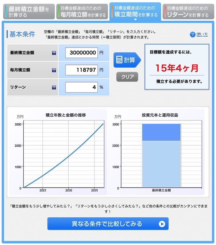 さっそく、3,000万円の資産を作るための期間を一緒にシミュレーションしてみましょう。