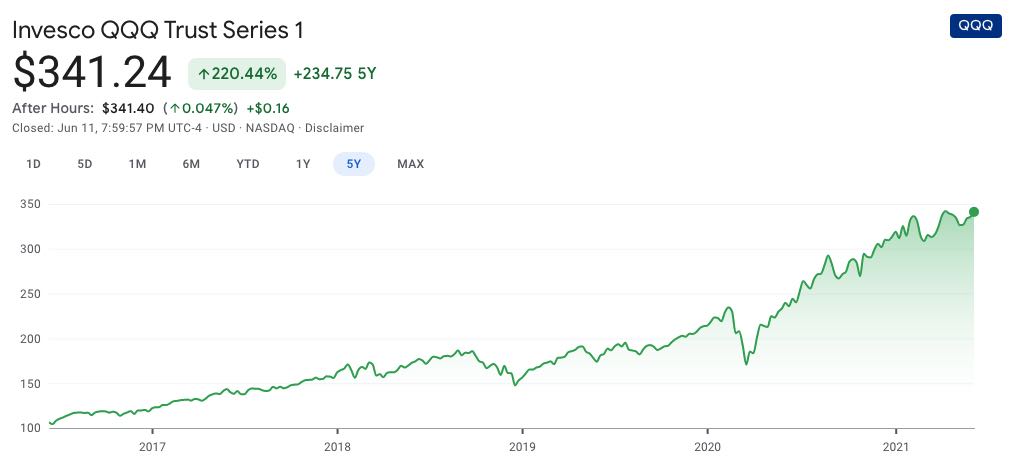 QQQというETFでも、5年で3倍以上のアップ。