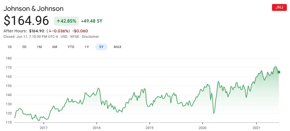 J&J(ジョンソン・アンド・ジョンソン)も配当利回り3%と人気ですが、株価も少しずつ上昇しています。