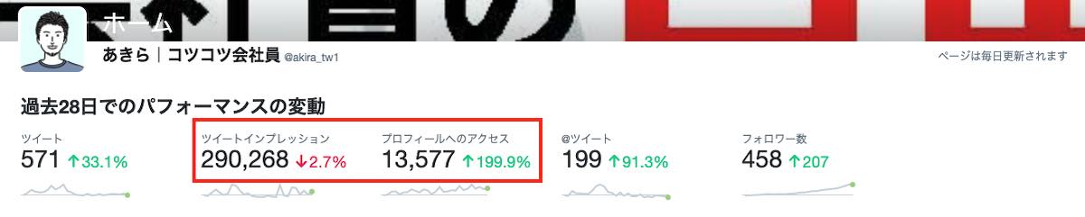 Twitterアナリティクスは、直近28日間のツイート運営の結果が反映されています。