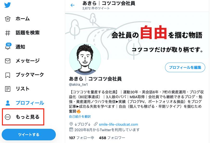 1WebブラウザでTwitterを開き、「もっと見る」をクリック